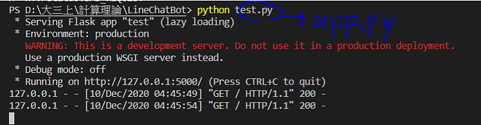 這裡因為我的程式碼放在test.py,所以執行的時候就是執行test.py