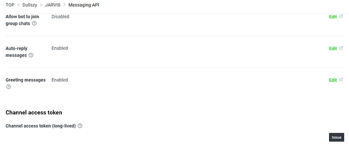 在 Messaging API 底下,要按下右方的「Issue」按鈕才會出現